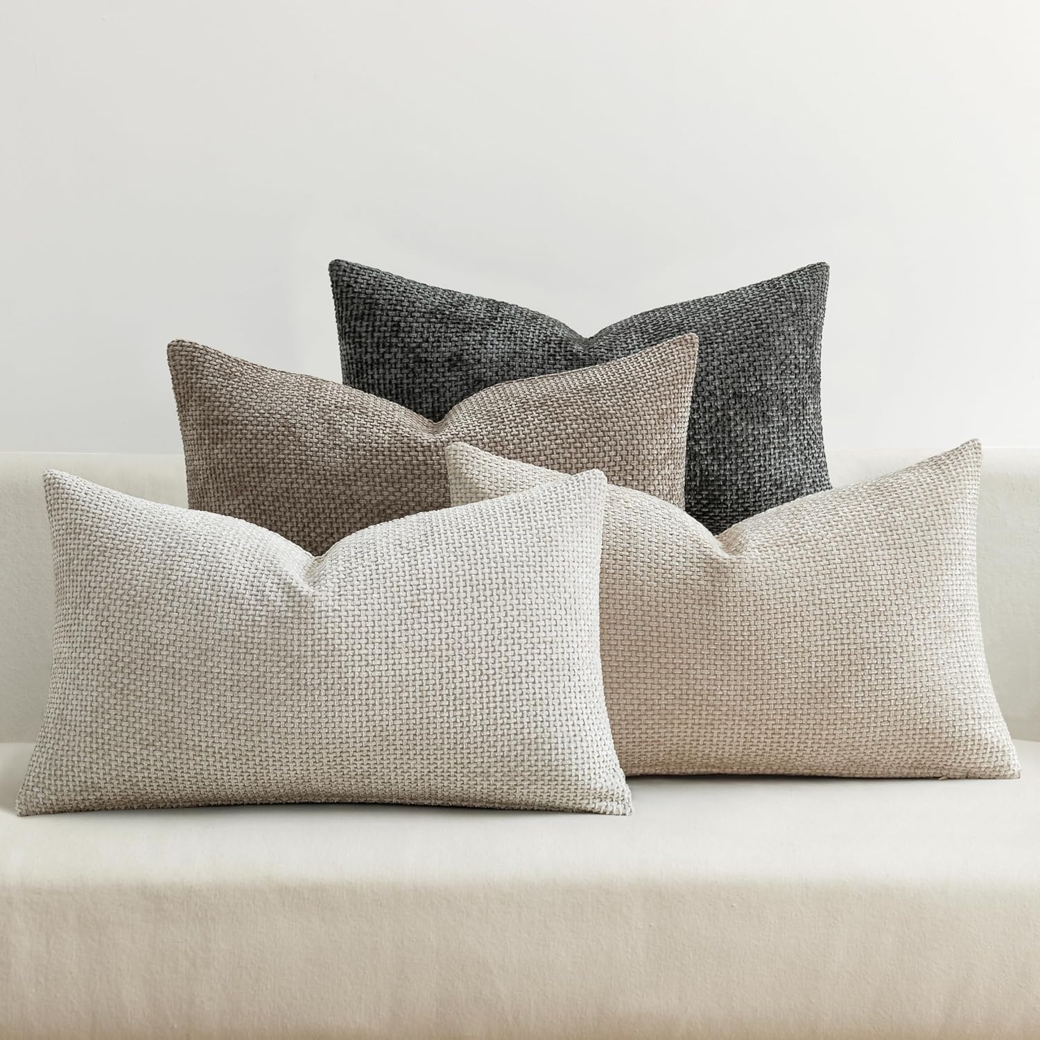MIULEE Pack of 4 Couch Throw Pillow Covers 12x20 Inch Neutral Soft Decorative Chenille Pillow Covers Farmhouse Boho Accent Cushion Covers for Mid Century Modern Home Decor Sofa Bedroom Living Room