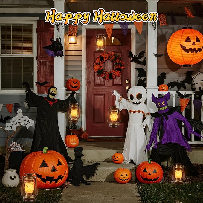- Portable Outdoor Lantern: Solar lantern with handle, can be hung or placed horizontally, no wiring required for outdoor use. Decorate indoor and outdoor as ambient light, warm and charming, ideal for both everyday and seasonal Halloween lantern setups