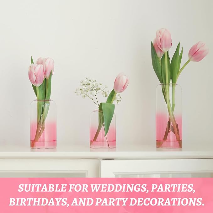 - Quality & Safety: Pink glass bud vases is made of selected premium thick borosilicate glass,hand-blown to a bright and high transparent finish with durable and sturdy. The top of the vase is smooth with no sharp edges, ensuring safety during the flower arrangement process. Note: Remember to add an appropriate amount of water according to the quantity and weight of the flowers for stability