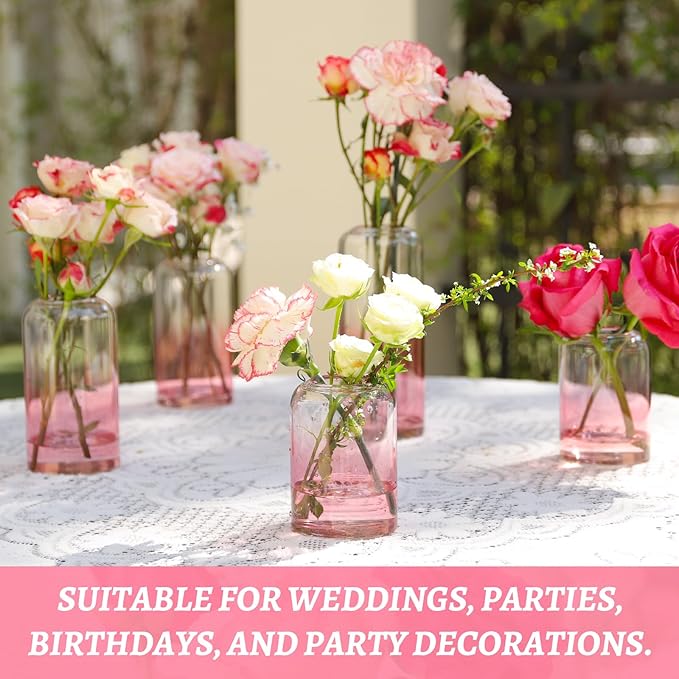 12pcs Pink Bud Vase, Glass Flower Vase for Centerpieces, Small Vases for Flowers, Decor Centerpiece for Bathroom, Decorative Vases for House Warming