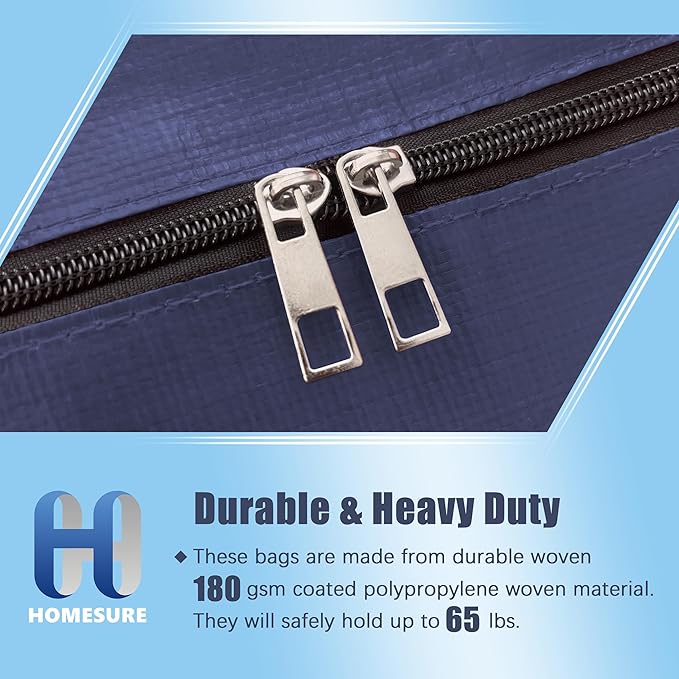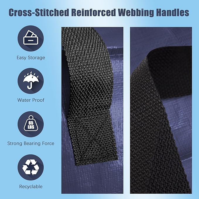 12 Pack Large Strong Moving Bags with Zippers & Carrying Handles - Water-Resistant - Heavy Duty Storage Tote for Space Saving, Fold Flat, Alternative to Moving Box (Blue)