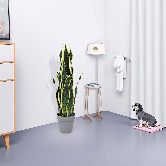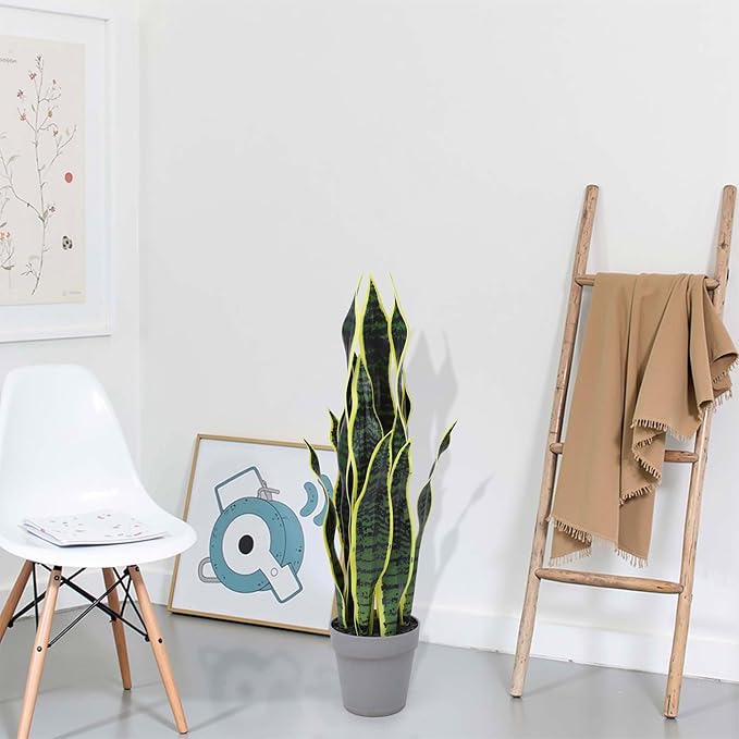 - [Easy to keep clean]: If fake snake plant are stained with dust, just wipe them with a damp cloth or rag. This faux snake plant will maintain its height, color and shape for many years without trimming and shaping, easy to take care of, and maintain its beauty.