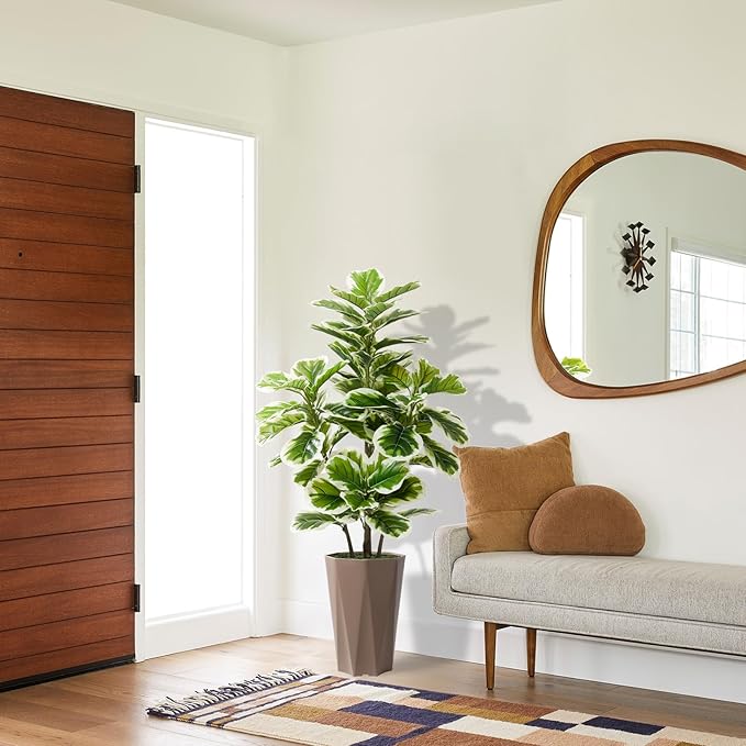 - Perfectly Proportioned Planter: Designed to complement the fake Lyrata tree, our planter offers the ideal blend of style and functionality. Each set includes everything you need: the tree, planter, and artificial moss, so you can skip the extra purchases and enjoy a hassle-free setup.