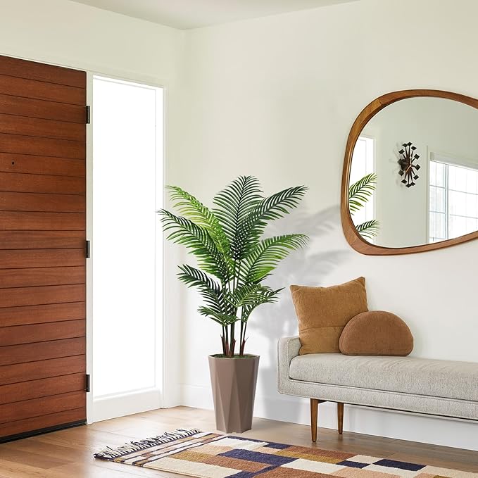 Artificial Palm Plant Indoor 5FT Fake Tree with Mocha Diamond Planter Faux Tropical Areca Tall Fake Floor Plant Potted Artificial Trees for Home Office Living Room Decor Indoor