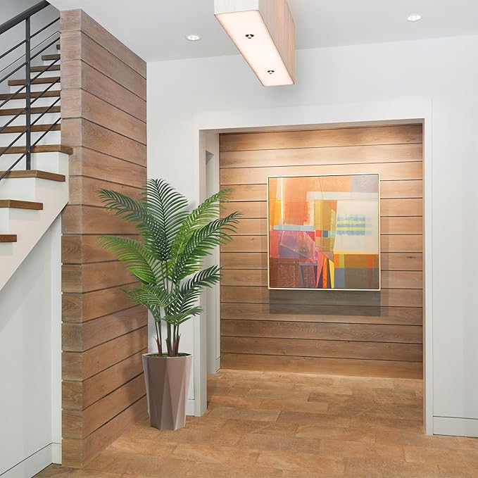 - Perfectly Proportioned Planter: Designed to complement the fake palm tree, our planter offers the ideal blend of style and functionality. Each set includes everything you need: the tree, planter, and artificial moss, so you can skip the extra purchases and enjoy a hassle-free setup.