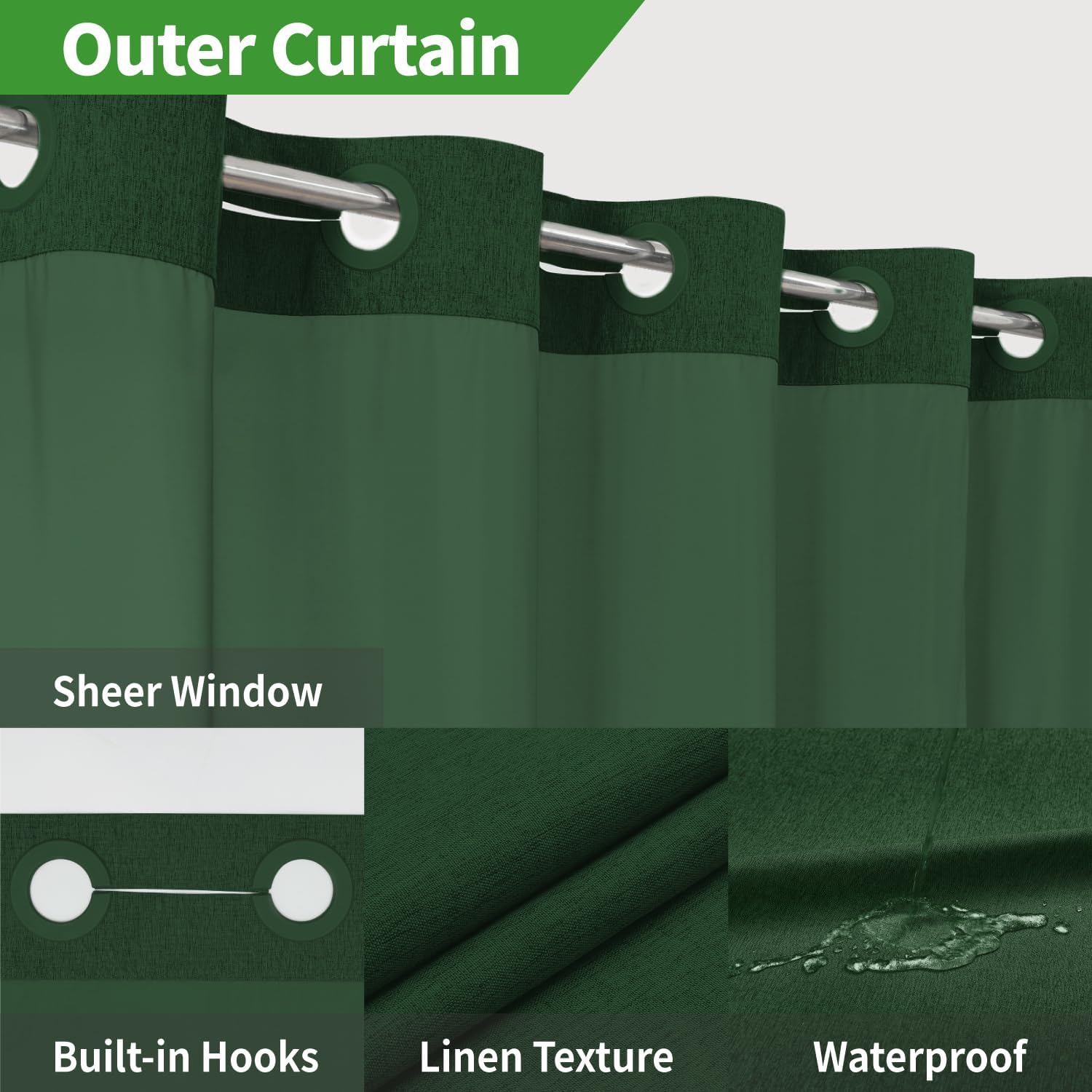 Extra Long No Hooks Needed Linen Textured Shower Curtain with Snap-in Fabric Liner Set,White Hotel Luxury Decor Shower Curtains for Bathroom,Waterproof & Washable,71Wx86H,Emerald Green