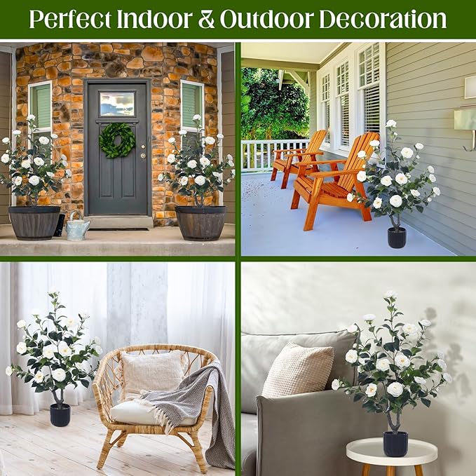 - Fake Artificial Camellia Tree: these 2 pieces of camellia flower trees mimic the appearance of a lifelike camellia flower tree, feature faux leaves, vivid flowers, letting you feel the presence of nature, all seasons are flowers with vital atmosphere