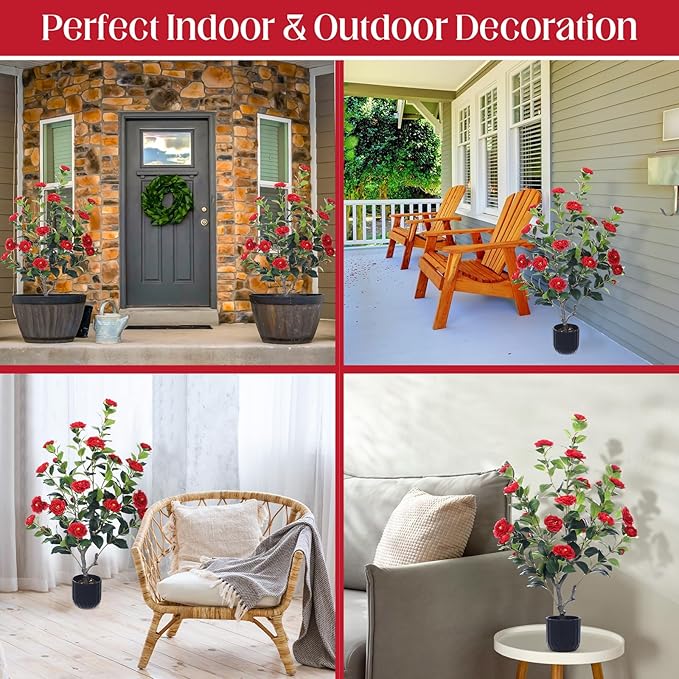 - Fake Artificial Camellia Tree: these 2 pieces of camellia flower trees mimic the appearance of a lifelike camellia flower tree, feature faux leaves, vivid flowers, letting you feel the presence of nature, all seasons are flowers with vital atmosphere