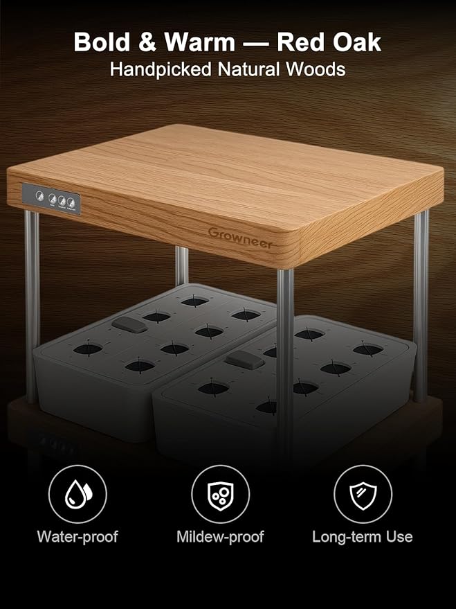 GROWNEER HydroEasy1.0 Hydroponic Growing System, 2-Tier Indoor Garden with Full-Spectrum LED Grow Lights, 32 Pods, Solid Wood Design, Independent Water Circulation, Ideal for Vegetable, Herb, Red Oak