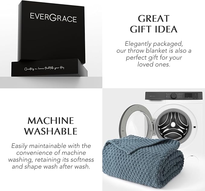EVERGRACEHOME Chunky Chenille Knit Throw Blanket for Couch, Soft Luxurious Moss Stitch Blankets for Bed, Cozy Decorative Farmhouse Knitted Throws for Sofa, Stormy Blue, 50" x 60"