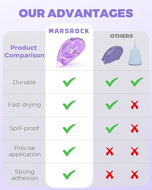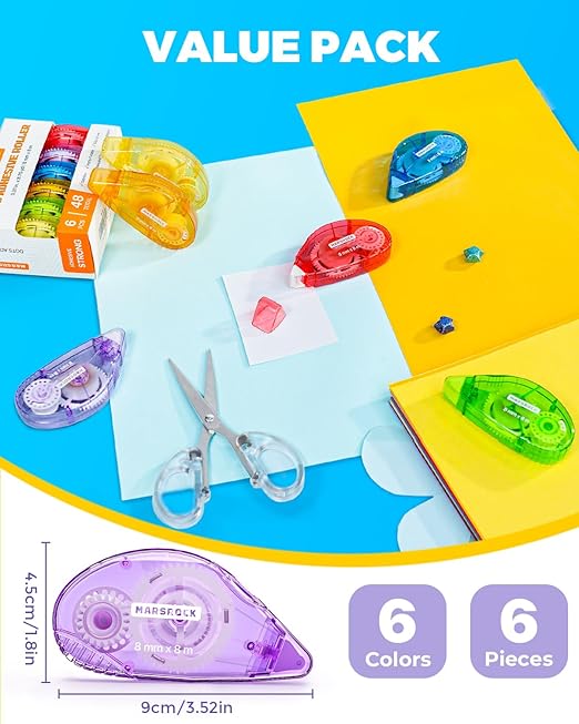 - Quick-Drying & Mess-Free: Compared to tearing double-sided tape, liquid glue, or glue sticks, Marsorck scrapbook tape keeps things clean and mess-free. It won’t wrinkle or damage paper, dries quickly, and helps you finish craft projects fast. It leaves no residue, so it’s neat and easy to use. Tips: It has a protective tip cover that prevents your bag from sticking to the adhesive