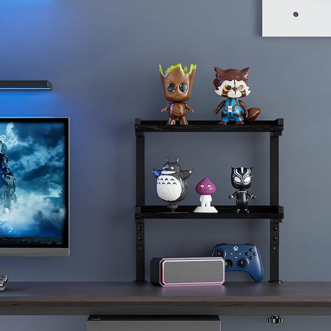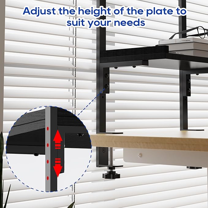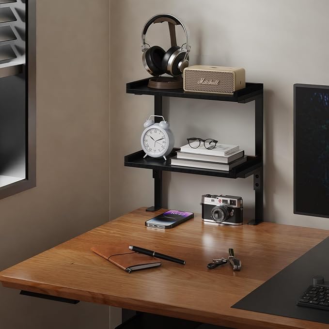- 【Great Decoration at Home/office】 -- Our desk shelf can be used upside down, it can be mounted not only above the table as usual, but also below it, maximizing its functionality to meet your needs. Two-layer shelf offers spacious storage space for office supplies, books, gaming devices,etc.