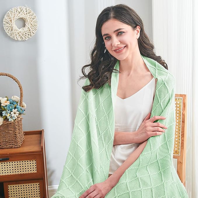 - 【2025 NEW COLOR】 We understand the unique pursuit of each consumer's home style, so we specially introduced a new color of 2025 knitted blanket: Whether it's Rouncy Mint, Mint Green, Sky Blue, Sand Gold Green,Cloud Cream, Ashley Blue, Camel, Light Purple, Golden Palm, Cornflower Blue, Wild Fern Green, Earth Brown, Pomegranate Red or Dusk. Whether you are pursuing simple and modern, or prefer a retro style, there is sure to add a touch of bright color to your home environment.