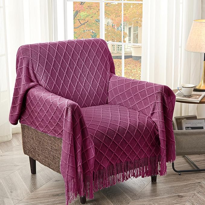 - 【FANTASTICAL COMBINATION】: Decorative blankets and throws ,nice raised diamond shape knit design and well-arranged fringes. It's couldn't be better to decorate your home for Christmas, Thanksgiving, and other holidays. A good cozy blanket is a combination of the right price, satisfactory adaptability, and lovely design.