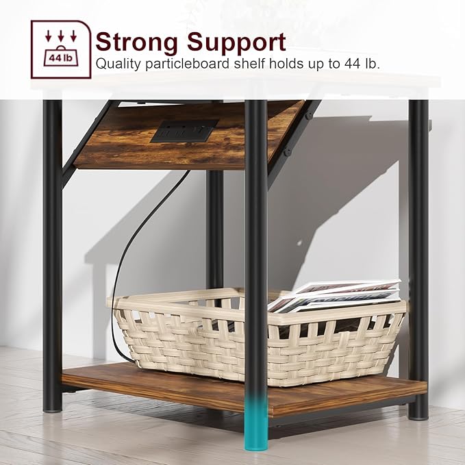 - 【Easy Assembly】With simple structure, complete accessories and numbered labels, you can follow the detailed instructions and tools in the package and easily complete the assembly of these rustic end tables with charging station within 15 minutes
