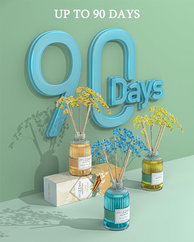 - LONG-LASTING FRAGRANCE: Enjoy up to 90 days of continuous aroma. The reeds effortlessly absorb and disperse the fragrance, creating a subtle and inviting atmosphere for weeks