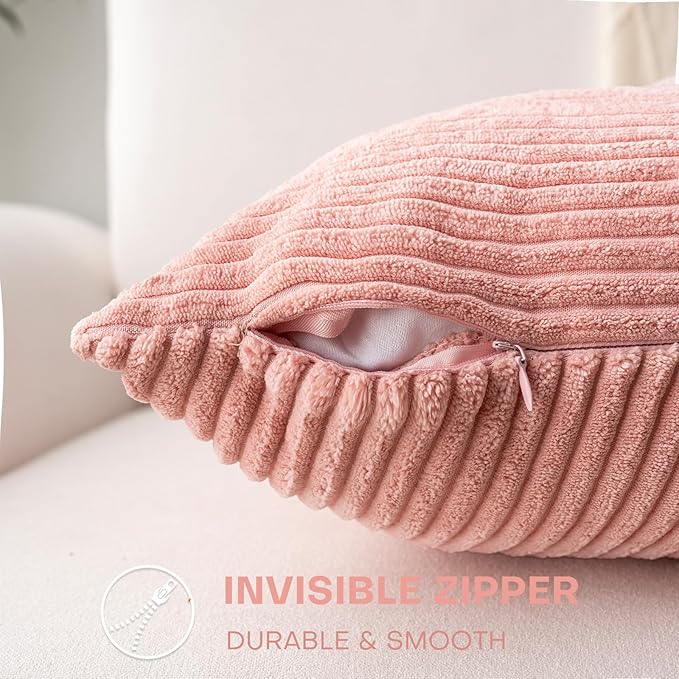 - 𝐃𝐨𝐮𝐛𝐥𝐞-𝐒𝐢𝐝𝐞𝐝 𝐃𝐞𝐬𝐢𝐠𝐧:Get double the style with throw pillow covers for home decor. The cushion cases feature a unique diagonal corduroy panel on the front for a bold, eye-catching look. Flip the throw pillows cases for couch over to reveal the back’s clean, corduroy stripes—a minimalist option. Perfect for changing up your throw pillow covers for living room, bedroom, farmhouse, home.