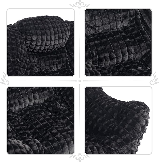 HollyHOME Fabric Lazy Chair with Foldable Ottoman, Accent Comfy Lounge Arm Chair and Folding Footrest Stool Set, Leisure Sofa Reading Chair and Footstool for Living Room, Bedroom, Dorm, Faux-Fur Black