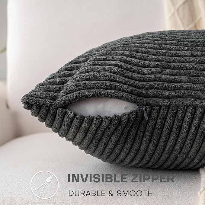 - 𝐂𝐨𝐫𝐝𝐮𝐫𝐨𝐲 𝐅𝐚𝐛𝐫𝐢𝐜 𝐁𝐮𝐢𝐥𝐭 𝐭𝐨 𝐋𝐚𝐬𝐭:These couch cushion covers are made from premium corduroy, offering a perfect blend of softness and durability. The deep vertical ridges of the corduroy throw pillow cover are designed to resist flattening The cloud-like soft feel of the throw pillows covers makes you feel comfortable and can be used as couch cushion covers for sofa or bed.