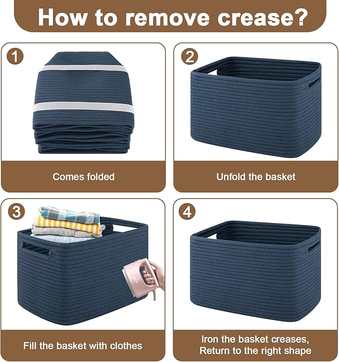 - NOTE: The woven baskets is folded for shipping, It will turn back to its elegant shape quickly by filling it with towels or blankets, and ironing is a great idea to regain the creases. Also, you can fold it into a flat shape for easy storage when not in use