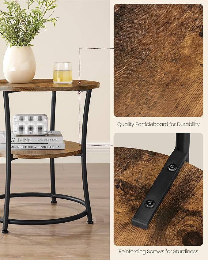 - Robust and Reliable: The 21.7" diameter side table features stable steel legs reinforced by round tubes, supporting up to 66 pounds on the top shelf for lasting use