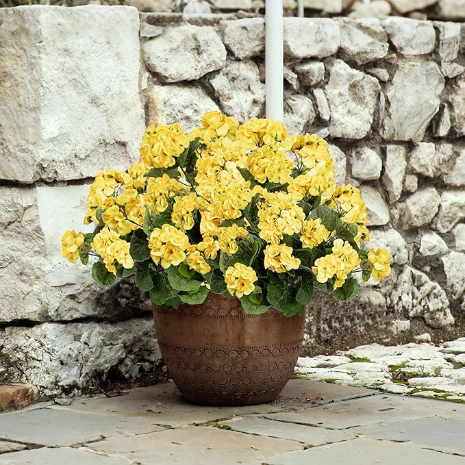 Plastic Flowers for Outdoors Home Decor Fake Plants Artificial Flowers Artificial Geraniums Outdoor Fake Flowers Silk Bouquet, Fall Decor for Interior Porch Garden Decor14.4(Yellow) 8PCS