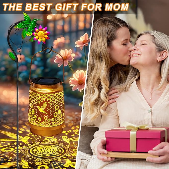 - Ideal Garden Decorations and Christmas Birthday Gifts for Women:EDOF solar outdoor lantern with this good lighting,beautiful pattern projection,solar outdoor lights is a surprising yard outdoor decorations to decorate your garden,patio,porch,pathway,walkway,terrace,balcony and lawn,tree;flowerbed;solar hummingbird lights with the bottom projection "mom" is a unique gardening hummingbird thoughtful gifts for women,mother,grandmother,birthday gift,Hummingbird lover,housewarming gifts on Mother's Day,Thanksgiving,Christmas.
