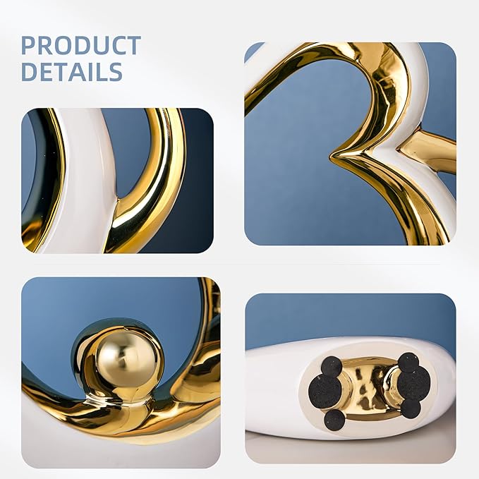 Gold Decor Coffee Table Sculpture, Modern Ceramic Statue, White Sculpture Heart Shape, Entry Table Decor, Living Room Table Centerpiece Ornament, Abstract Art Sculptures Home Decor
