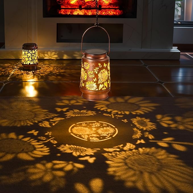 Homemory Solar Lanterns Sunflower Lights Outdoor Waterproof Garden Decor Women Gifts for Birthday, LED Hanging Solar Lights Metal Lantern Decoration Outside for Yard, Patio, Backyard, Porch, Lawn
