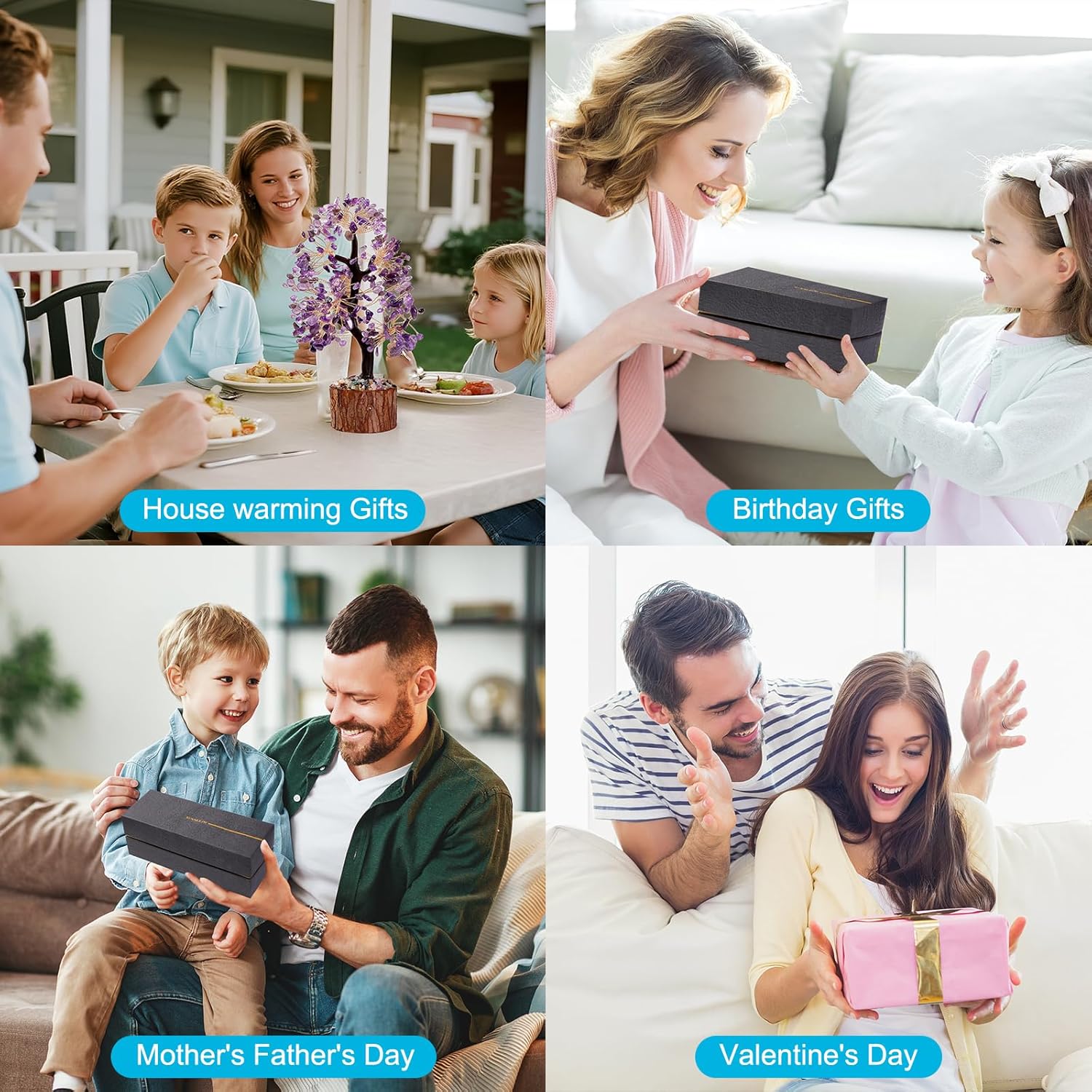 - Crystal Gift: Purple chakra tree decor are exquisite gifts for family, friends, relatives, and friends on various occasions such as Christmas, birthdays, Father's Day, Mother's Day, anniversaries, and Valentine's Day. This unique and uplifting gift expresses wishes for prosperity and success.