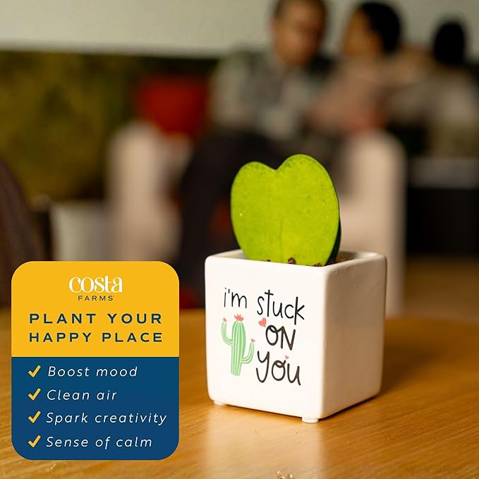 Costa Farms Hoya Heart Live Plant in Decorative Pot, Easy to Maintain Succulent Indoor Houseplant, Perfect for Home, Room, or Office Decor, Great House Warming or Birthday Gift, 5 Inches Tall