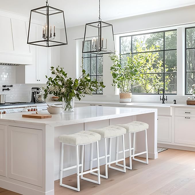 - Sturdy Metal Frame Kitchen Stools - Solid metal frame with built-in footrest makes the counter stool more sturdy, and could be used for years without problem. Nicely stitched faux leather with steel base, the modern and minimalist design of the bar stool fits in with both contemporary and traditional decor. The non-slipped foot pads of the kitchen stools also protect the floor from being scratched