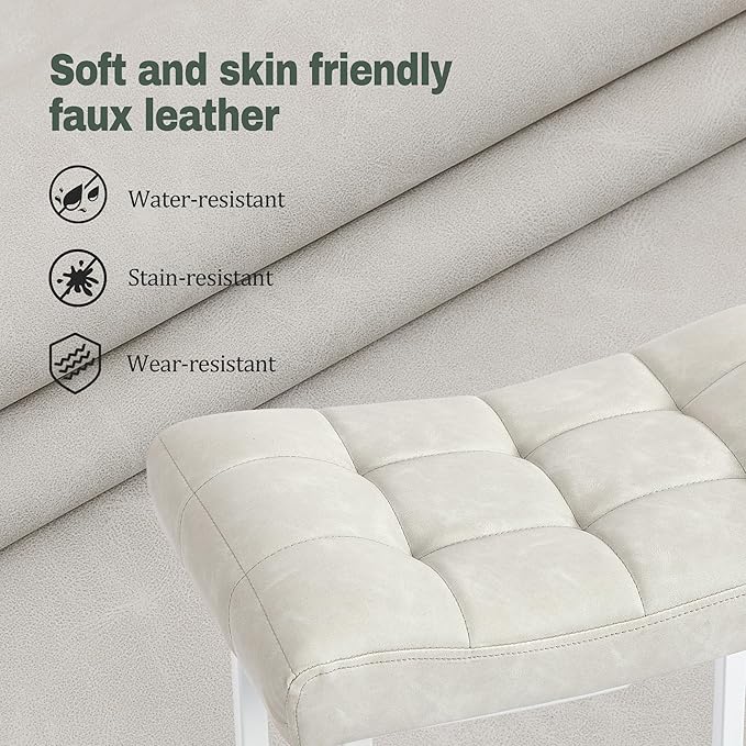- Water Resistant Faux Leather Padded Seat - The water resistant faux leather seat is also stain resistant and scratch resistant, which is easy to clean and maintance. These exquisite faux leather barstools lend the luxe feel you’ve been craving for your kitchen's countertop, island, or in your dining space. You and your guests will love the contoured seat, high-density, padded sponge cushion, and supple faux leather upholstery