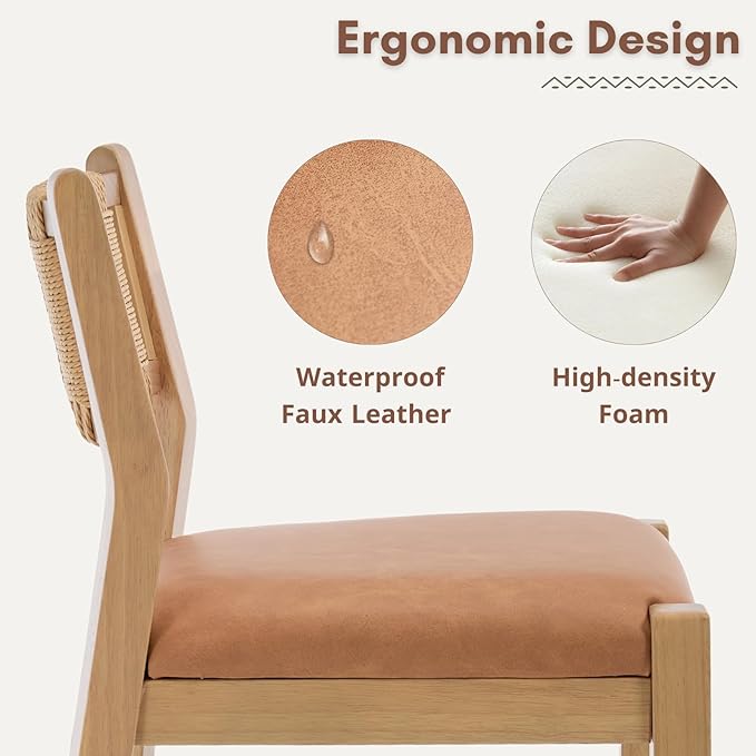 - [Exceptional Comfort]- Padded with high-density foam and covered in a soft, stain-resistant PU leather, the upholstered seat of the boho counter stools invite you to sink in pure relaxation for long conversations or meals.
