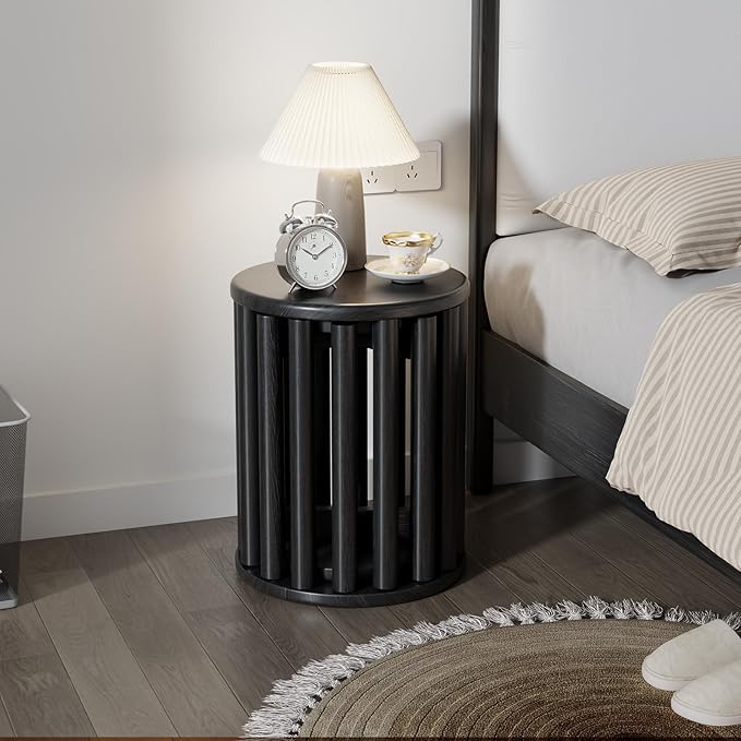 Stackable Stools Set of 4,Wood Stool,18 Inch Stool,Stacking Stools,Nesting Table,Sturdy and Durable,No Installation Required,Top Stackable Round Side Table (Black Barstool)