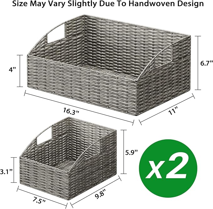 - PACKAGE INCLUDE: Pack of 3 rattan baskets come in two sizes: 16.3"*11"*6.7" (L*W*H); 7.5"*9.8"*5.9" ( L*W*H). Please note that since the products are all handmade, there may be a 1/4 inch vary in size.