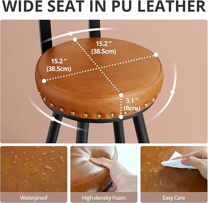 - QUICK SETUP,EASY CLEAN: Parts are labeled, so you can put these counter stools together in 20 minutes.The synthetic leather is waterproof and wipes clean quickly