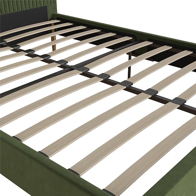 Mr. Kate Daphne Upholstered Bed with Vertical Channel Tufted Headboard, Full, Olive Green Velvet