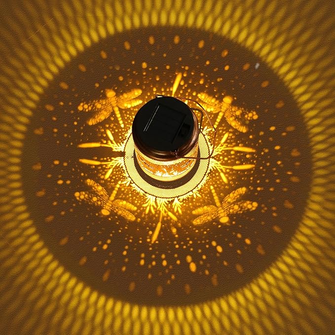 - Elegant Garden Decor: Enhance your garden, patio or backyard with the gold bronze solar dragonfly lanterns featuring a vintage dragonfly pattern. At night the ornate openwork metal finish casts a warm and charming light pattern, creating a warm and inviting outdoor atmosphere