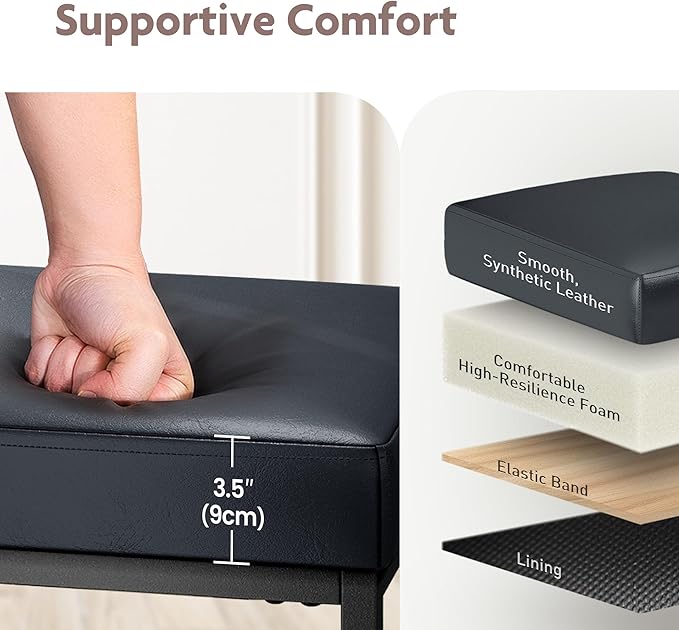 - [Upholstered PU Leather Seat]: The kitchen counter stools feature a retro matte leather surface that efficiently prevents water and stains, making cleaning easy. The 3.54" thick upholstered seat design with a soft backrest ensures a cozy seating experience. Upgrade your dining area now use our stylish counter height bar stools!