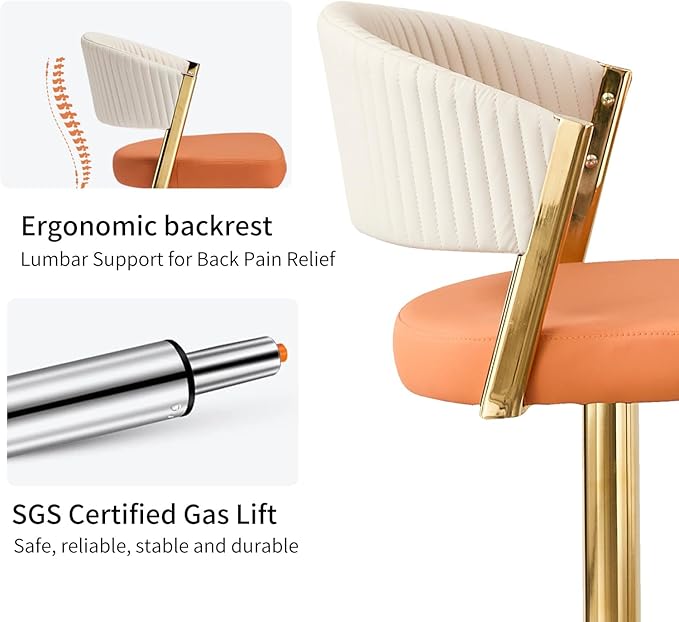 Bar Stools Set of 2, Adjustable Swivel Counter Height Bar Stools with Back and Footrest, PU Leather Bar Chairs for Kitchen Dining Room, Orange
