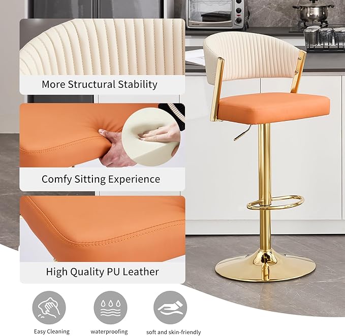 - WIDELY USED: This modern orange bar height stools for kitchen island, home bars, coffee shops, restaurants, living rooms and any decoration. It allows you to fully enjoy a comfortable and refined life in different settings.