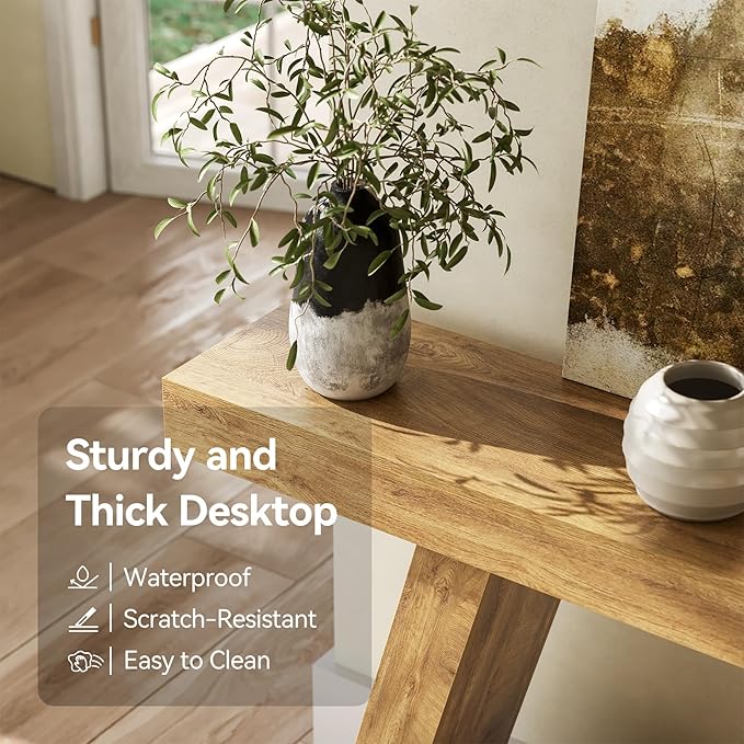 - Farmhouse Style: With a rustic brown finish, this console table adds a warm, farmhouse charm to any room. Its simple lines and natural wood grain pattern create a timeless piece that complements a variety of home decor styles
