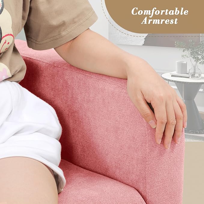 Athena Collection Modern Accent Chair with Cushion, Comfy Upholstered Fabric Reading Chair for Adult, Soft Sofa Armchair for Living Room, Bedroom, Dorm, Pink