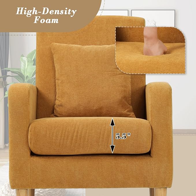 Athena Collection Modern Accent Chair with Cushion, Comfy Upholstered Fabric Reading Chair for Adult, Soft Sofa Armchair for Living Room, Bedroom, Dorm, Yellow