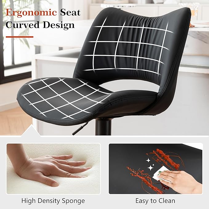 YOUNIKE Modern Bar Stools Set of 2, Black PU Leather Upholstered Barstools, Swivel Adjustable Armless Counter Stool, Ergonomic Hollow Mid Backrest Bar Chair for Kitchen Island, Home Bar Counter