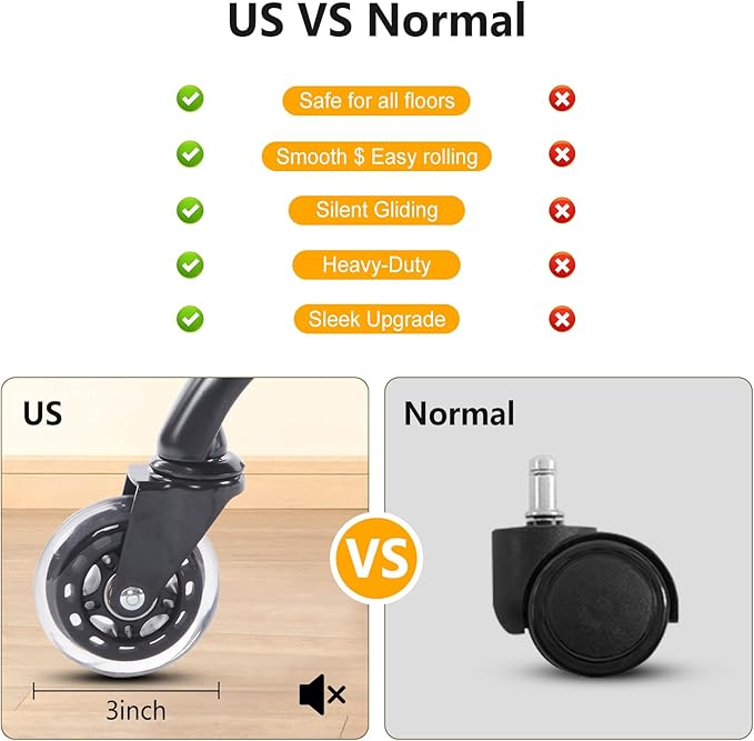 - 𝐖𝐡𝐞𝐞𝐥𝐬 𝐟𝐨𝐫 𝐚 𝐕𝐚𝐫𝐢𝐞𝐭𝐲 𝐨𝐟 𝐅𝐥𝐨𝐨𝐫𝐬: Suitable for family wood floors, carpets and marble floors. More smooth, silent, better load-bearing. For you to save the cost of buying chair wheels, increase the service life of the chair