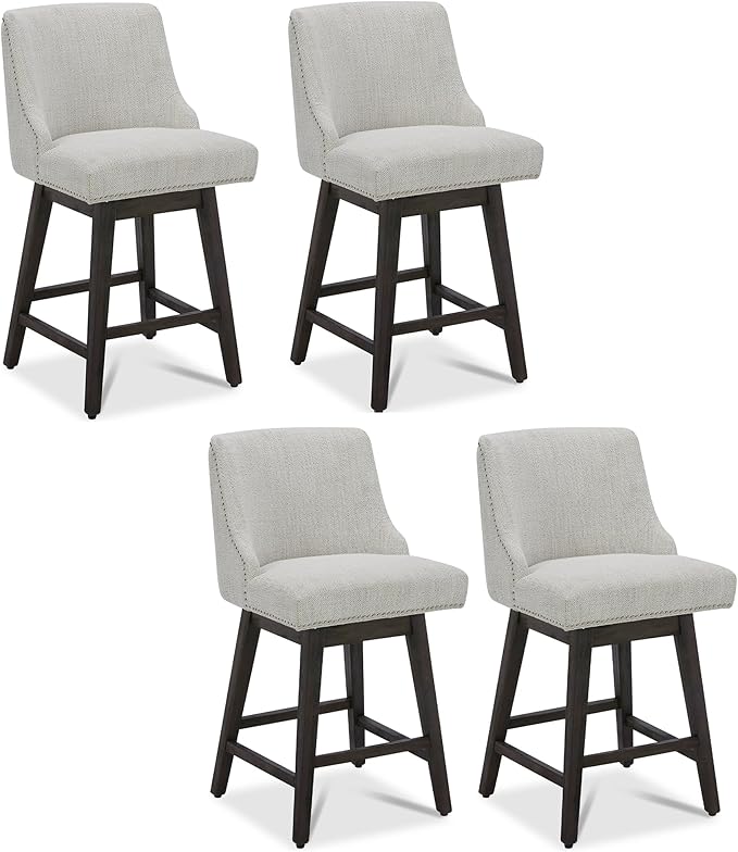 CHITA Counter Height Swivel Bar Stools Set of 4, FSC Certified Upholstered Counter Stools, Modern Swivel Barstools with Wood Legs for Kitchen Island, 26" Seat Height, Fabric in Ivory