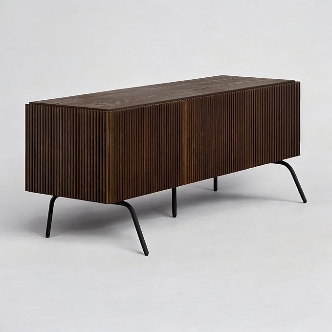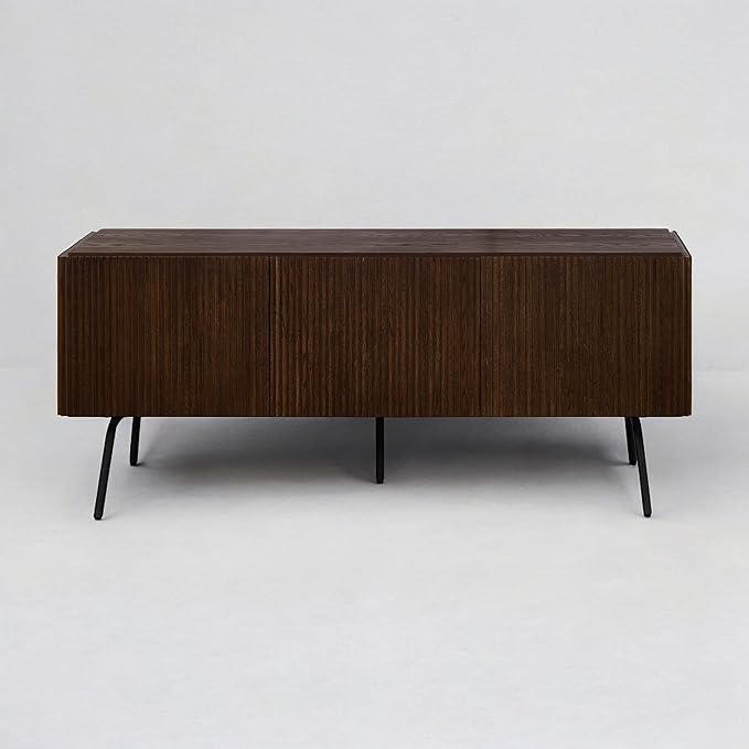 NTC Veil TV Stand with 3 Doors for TVs up to 60’’, Media Console with Vertical Groove Design and Metal Legs, Modern Entertainment Center for Living Room and Bedroom, Effortless Assembly, Dark Walnut