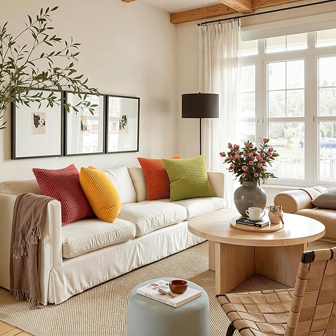 MIULEE Fall Decorative Pillow Covers 20x20 Inch Set of 4 Burnt Orange Green Gradient Series Boho Farmhouse Home Decor Couch Throw Pillows Summer Modern Corduroy Pillowcases for Sofa Living Room Bed